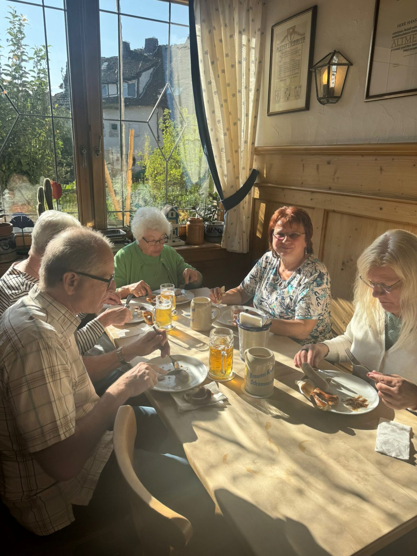 Den gelungenen Abschluss des Ausflugs bildete das gemeinsame Abendessen gegen 17:30 Uhr im traditionsreichen Gasthof Tambosi. In geselliger Runde ließen die Teilnehmer den Tag bei fränkischer Küche und kühlen Getränken gemütlich ausklingen.